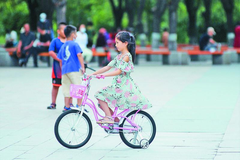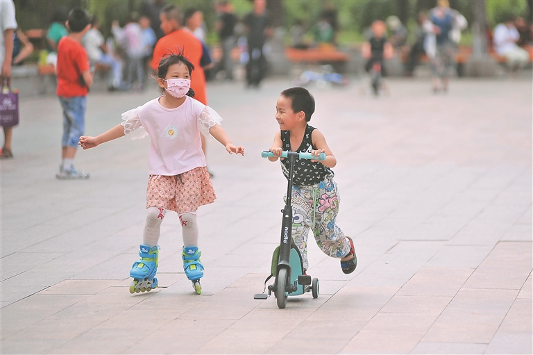 8月1日傍晚,在哈爾濱市南崗區(qū)剛開園不久的農(nóng)科院公園內(nèi),有幾十名孩子在玩耍。他們有的跟著長輩健身、走圈兒,有的在廣場上跳舞、玩玩具,更多的是兩三個在一起做游戲、嬉鬧?!疤鞖忸A(yù)報說一會兒有雨,可我孫女還是要來玩。”一名跳廣場舞的大娘說,每天這里都有成群的孩子玩耍,無憂無慮的,讓人看著就開心。