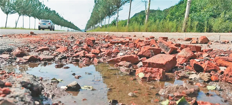 一位業(yè)內(nèi)人士告訴記者,這條路上的信號燈、減速標(biāo)志和監(jiān)控等交通基礎(chǔ)設(shè)施缺失,大型車輛超載現(xiàn)象嚴(yán)重、通行頻繁也使得這條路建完不久就破損。同時,路面的排水井清掏不及時、排水口不清理造成阻塞,嚴(yán)重影響排水,再加上部分道路路面坡度不合理積水嚴(yán)重,路面遭長時間浸泡也加速了道路破損。