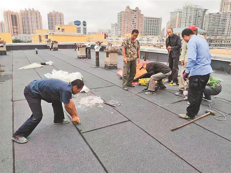 香坊區(qū)舊改辦組織施工人員解決房屋漏水問題。