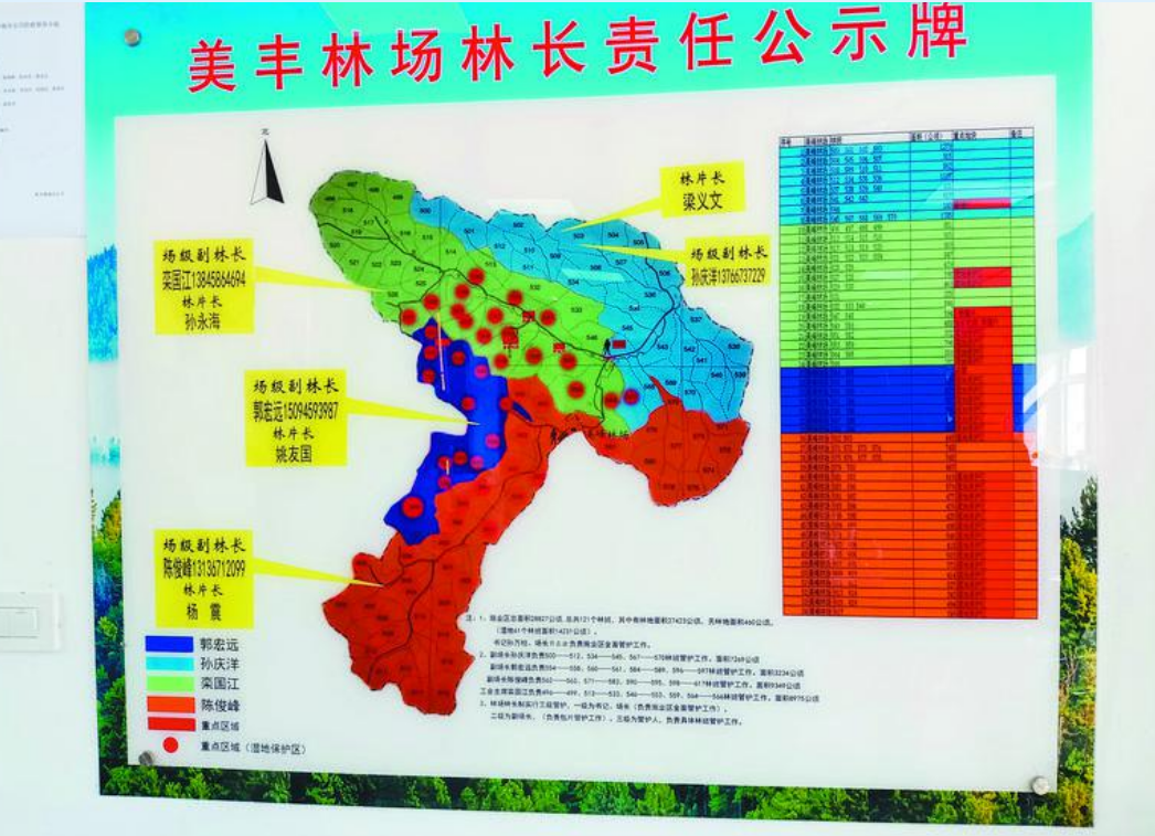 記者在美豐林場分公司了解到,林長制實(shí)行林長、副林長、林片長三級管護(hù)。將施業(yè)區(qū)28827公頃管護(hù)面積劃分成4片、121個林班,4個副林長包片,4名林片長、12個護(hù)林員將管護(hù)任務(wù)層層分解到人頭。