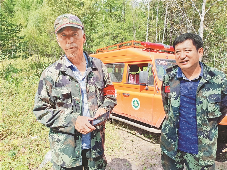 每當(dāng)天熱物燥,護(hù)林員們就格外當(dāng)心。烏伊嶺局公司永勝林場分公司副林長陳海波和護(hù)林員高希云一大早就來到他們的管護(hù)責(zé)任區(qū)——西北溝干溝河至37號大崗展開巡護(hù)。作為林片長,陳海波負(fù)責(zé)5個護(hù)林員總計6360公頃的管護(hù)責(zé)任,高希云承擔(dān)著1741公頃巡護(hù)任務(wù)。