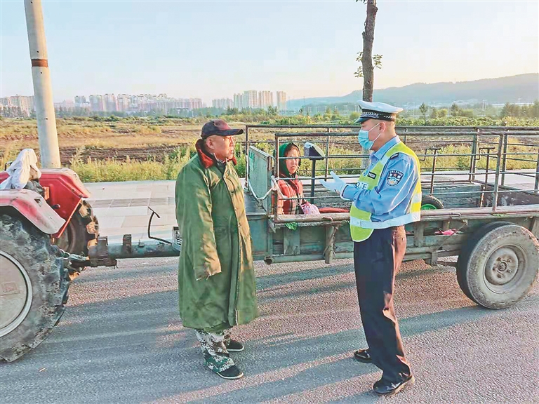 針對農(nóng)民秋收期間要集中外出的現(xiàn)實(shí)問題,交警部門配合農(nóng)機(jī)管理部門,與14個(gè)鄉(xiāng)鎮(zhèn)109個(gè)自然村的負(fù)責(zé)人、志愿者、輔警建立了“護(hù)秋收”微信群,由志愿者和輔警及時(shí)告知農(nóng)民務(wù)工、上地的時(shí)間段、行經(jīng)的路段。交警部門除對農(nóng)民外出比較集中的路段加大巡查力度外,還會(huì)安排警力對涉及的車輛進(jìn)行安全防護(hù),提示周邊車輛及時(shí)避讓。